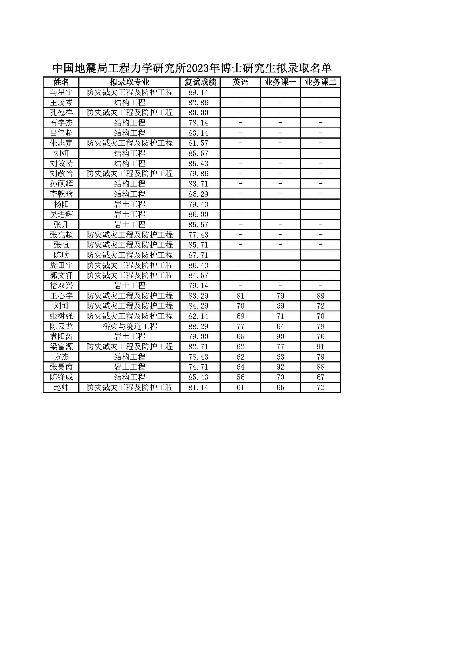 附件:中國地震局工程力學(xué)研究所2023年博士研究生擬錄取名單