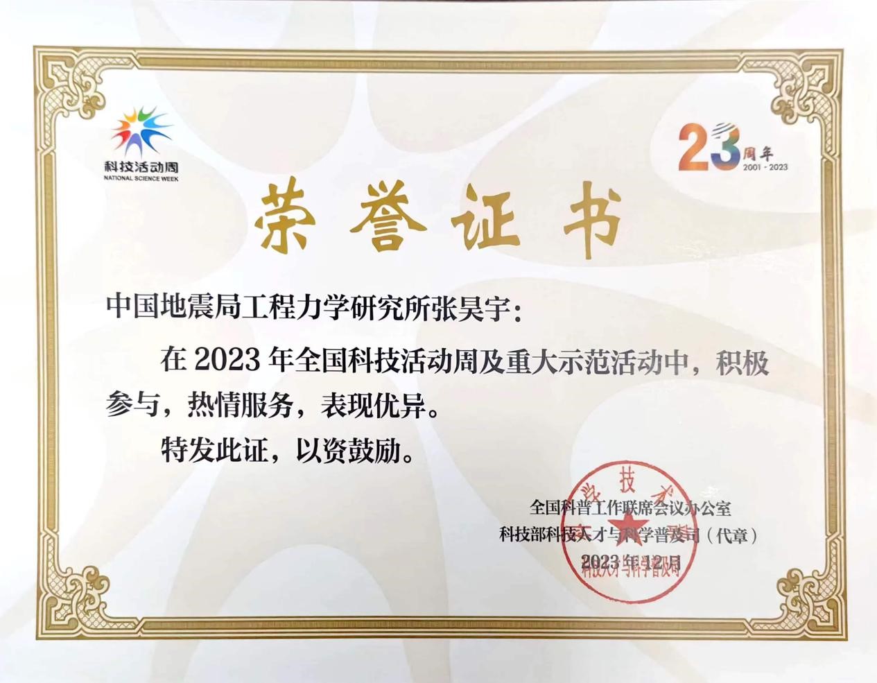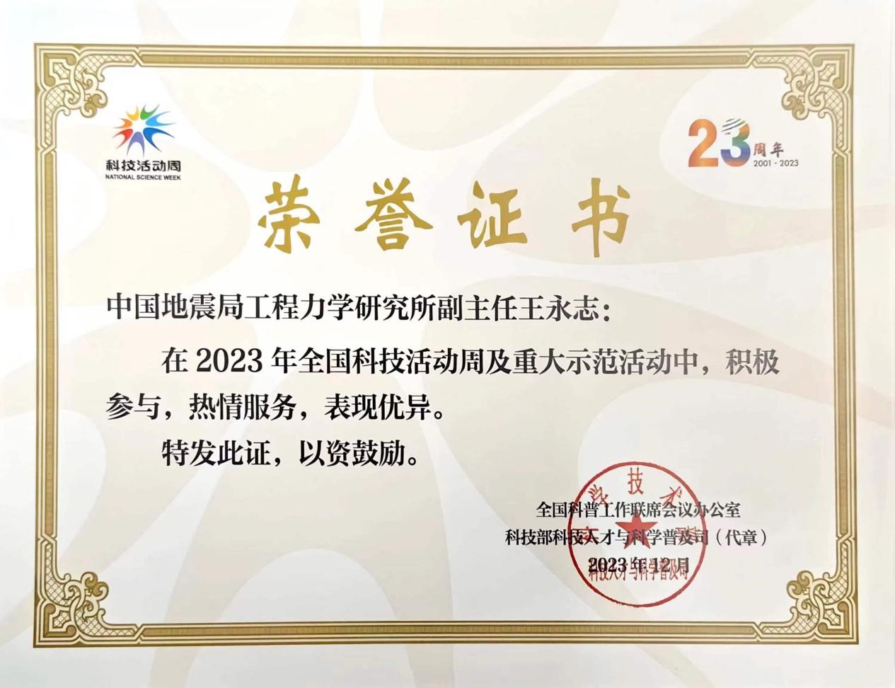 發布時間: 2024-01-26 點擊數量:8113在2023年舉辦的全國科技活動周及重大示范活動中,我所積極參與表現突出,獲全國科普工作聯席會議辦公室表彰。我所科技發展部獲先進集體,王永志研究員、張昊宇副研究員獲先進個人。