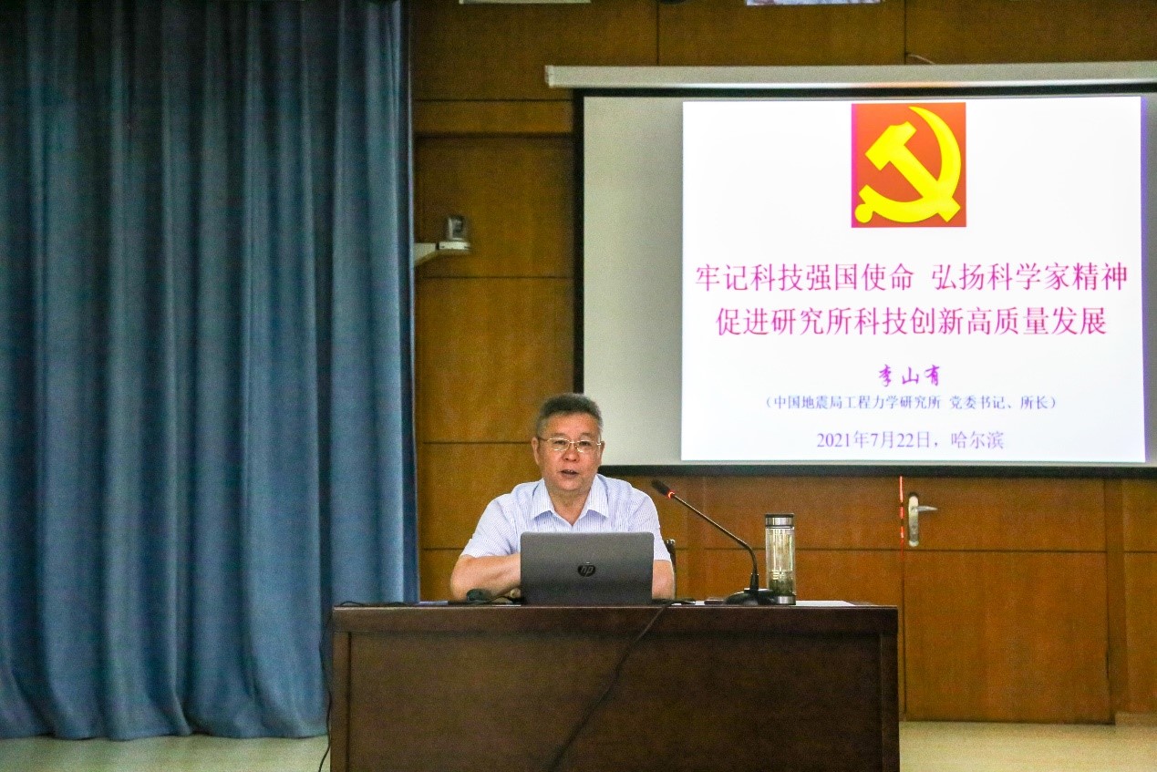 發布時間: 2021-07-27 點擊數量:39847月22日,工力所舉行黨史學習教育專題黨課報告會。工力所黨委書記、所長李山有同志以“牢記科技強國使命 弘揚科學家精神 促進研究所科技創新高質量發展”為主題向全所干部職工和學生黨員講授黨史學習教育專題黨課。