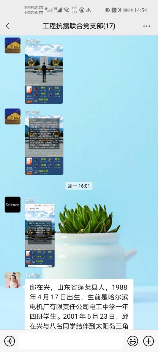 工程抗震與防災韌性團隊黨支部開展網上祭掃活動,全體黨員一同參與對先烈祭掃、學習英烈們的英雄事跡、交流個人感受,表達緬懷、敬意。