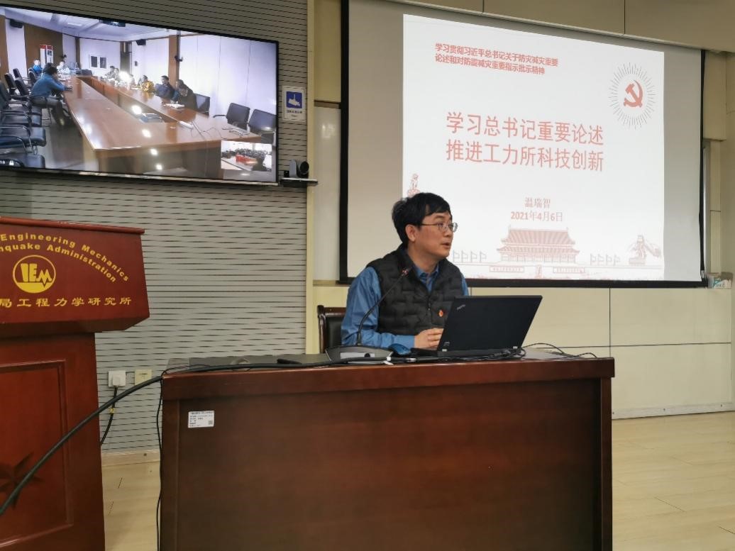 溫瑞智主任同與會科技人員一道共同學習了習近平總書記關于防災減災救災重要論述和防災減災救災重要指示批示精神,對創新在國家發展全局中處于核心地位分享了自己的認識和思考。科技創新要堅持政治引領,貫徹落實習近平總書記“兩個堅持”“三個轉變”重要論述和“以防為主、防抗救相結合”的工作方針。溫主任結合我所科研工作實際,系統介紹了近年來科技創新工作取得的進展和成績,結合自然災害防治、韌性城鄉、地震應急和科考等生動地闡述了唯有科技創新才是推進防震減災事業現代化建設高質量發展的重要動力。最后,溫主任用“夯實監測基礎、加強預報預警、摸清風險底數、強化抗震設防、保障應急響應”作為培訓報告的結語,表達了工力所廣大科技工作者踐行“防震減災,造福人民”的初心使命。