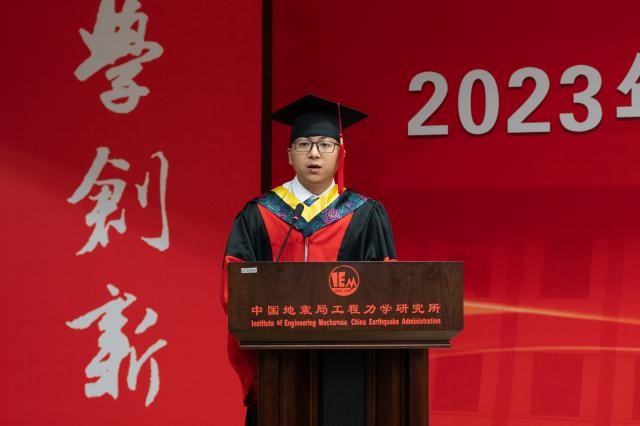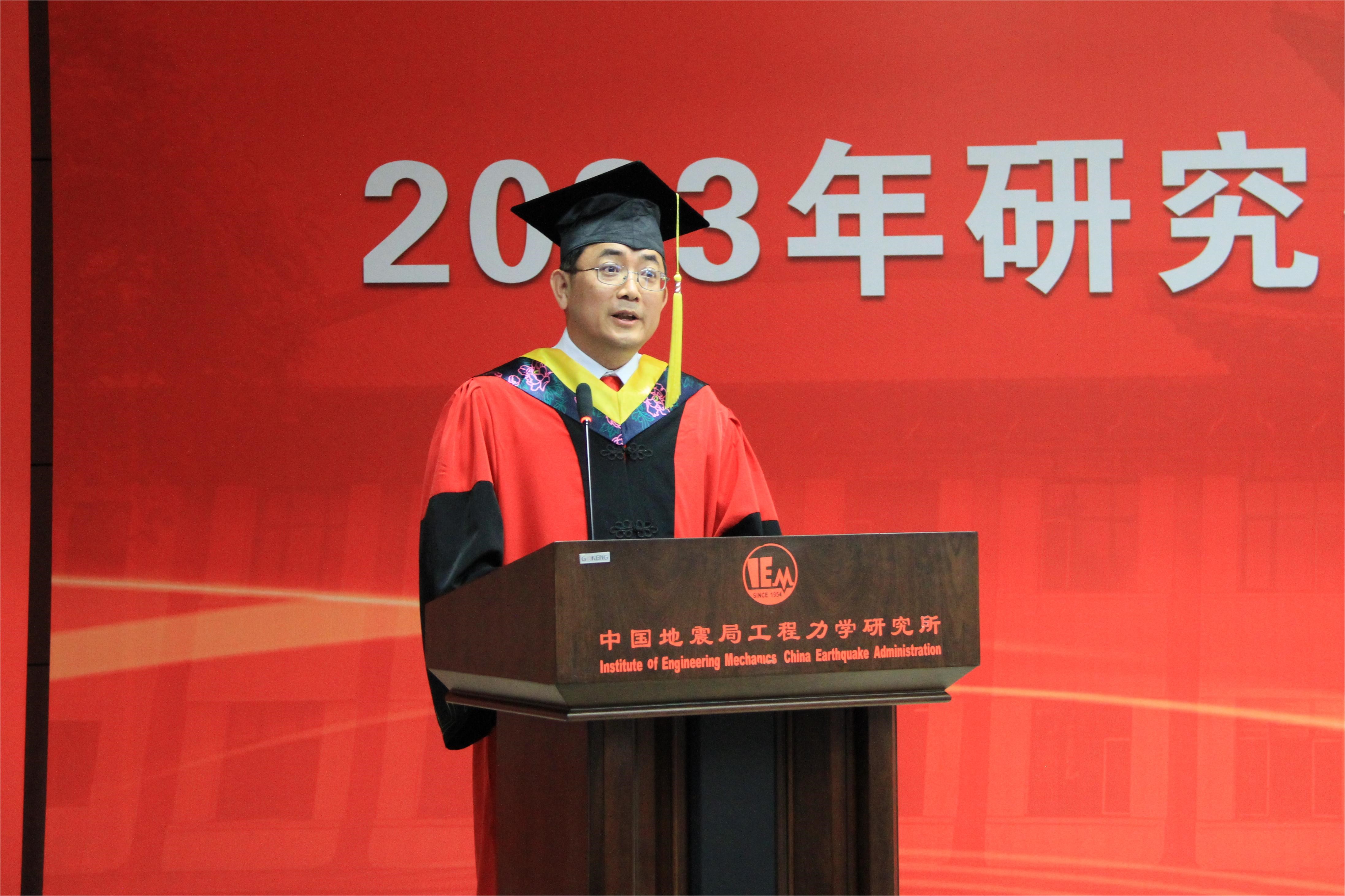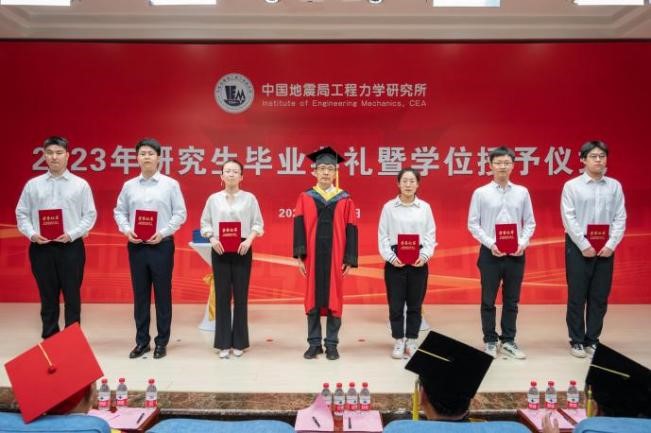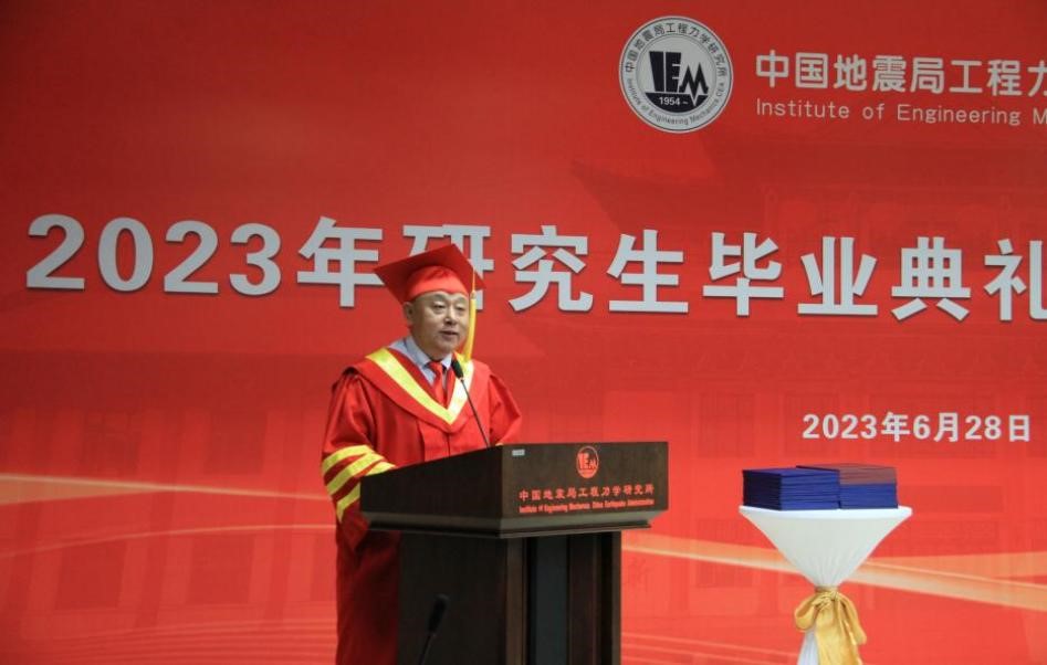 發布時間: 2023-06-30 點擊數量:52796月28日下午,中國地震局工程力學研究所2023年畢業典禮暨學位授予儀式在主樓四樓會議室隆重舉行。所學位評定委員會主任孫柏濤,黨委書記、所長李山有,黨委副書記張孟平,紀委書記孔繁鈺,副所長張令心、溫瑞智出席學位授予儀式。溫瑞智主持儀式。