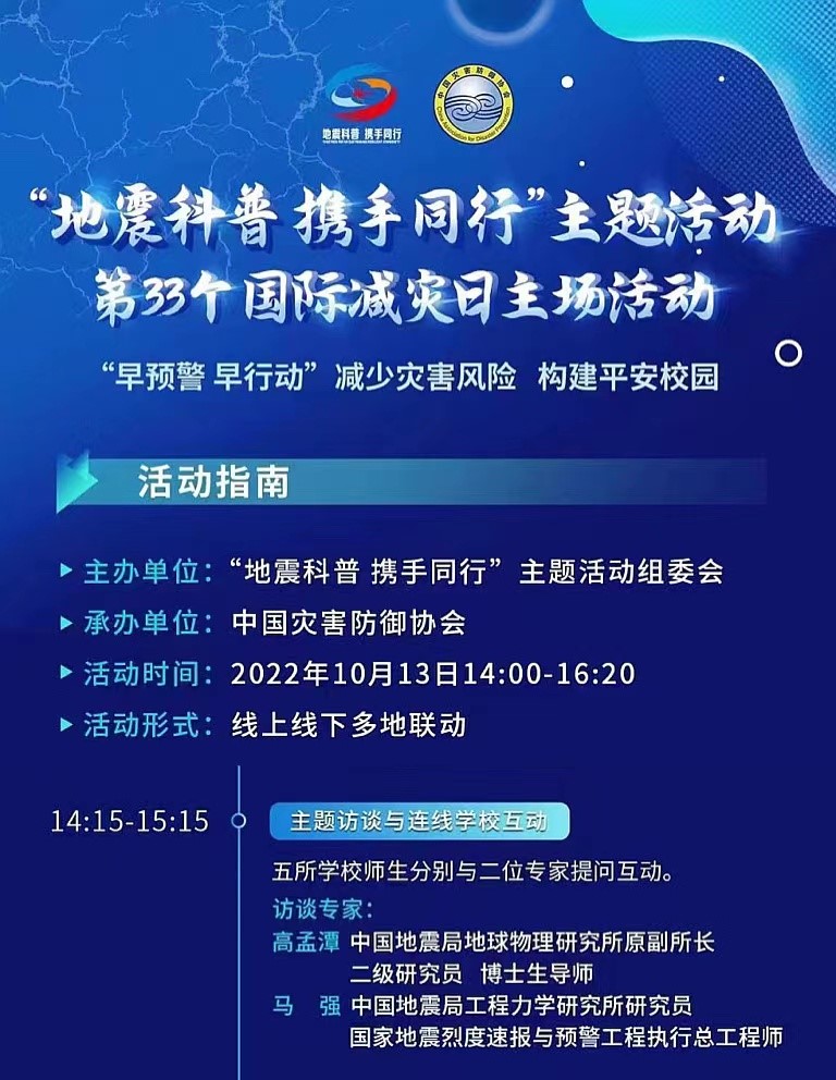一是我所馬強(qiáng)研究員受邀參加中國(guó)災(zāi)害防御協(xié)會(huì)組織的“地震科普 攜手同行”主題直播活動(dòng)。線上訪談期間,馬強(qiáng)研究員就怎樣獲得預(yù)警信號(hào),接收預(yù)警信號(hào)后如何做;如何減輕地震風(fēng)險(xiǎn),建設(shè)更安全校園;山區(qū)學(xué)校師生如何開展應(yīng)急避險(xiǎn);高樓避險(xiǎn)有何不同等社會(huì)關(guān)切問題進(jìn)行了細(xì)致解答,各平臺(tái)直播和回放總量已超800萬(wàn)次。