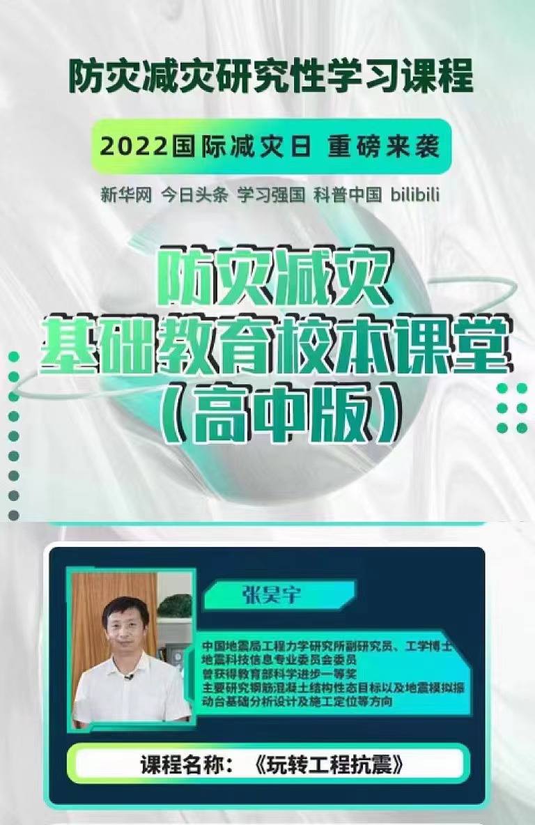 二是我所張昊宇副研究員受邀參加北京市地震局組織的“防震減災(zāi)研究性學(xué)習(xí)課程”錄制, 原創(chuàng)科普視頻課程《玩轉(zhuǎn)工程抗震》在嗶哩嗶哩、新華網(wǎng)、今日頭條等平臺(tái)播出。