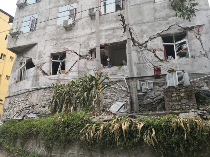 康定線科考組在磨西鎮(zhèn)考察了房屋的震害,重點(diǎn)關(guān)注了張貼紅色破壞標(biāo)識(shí)的房屋。房屋主要類(lèi)型以底層框架磚混結(jié)構(gòu)為主,包含少量的框架結(jié)構(gòu)、磚木結(jié)構(gòu)等,其中磚混結(jié)構(gòu)房屋破壞多集中在1層,上部樓層破壞較輕微,且部分房屋的破壞程度比較嚴(yán)重,房屋完全無(wú)法使用。
