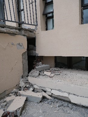 圖1 某學校隔震結(jié)構(gòu)(隔震溝發(fā)生碰撞)