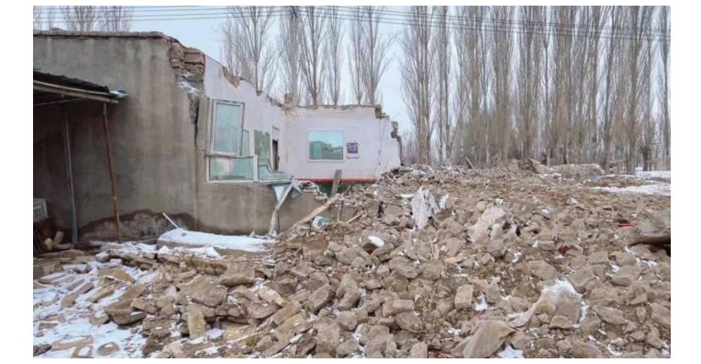 科考隊還對位于Ⅷ度(8度)區的衛生院以及阿合奇縣域的村鎮建筑進行了考察,衛生院為框架結構,主體結構基本完好,部分填充墻發生嚴重破壞。村鎮建筑中由政府統一規劃的富民安居房由于抗震設防構造良好,使得結構在地震中基本保持完好,而村民自建房由于設防構造不完善,部分發生了中等或嚴重破壞。