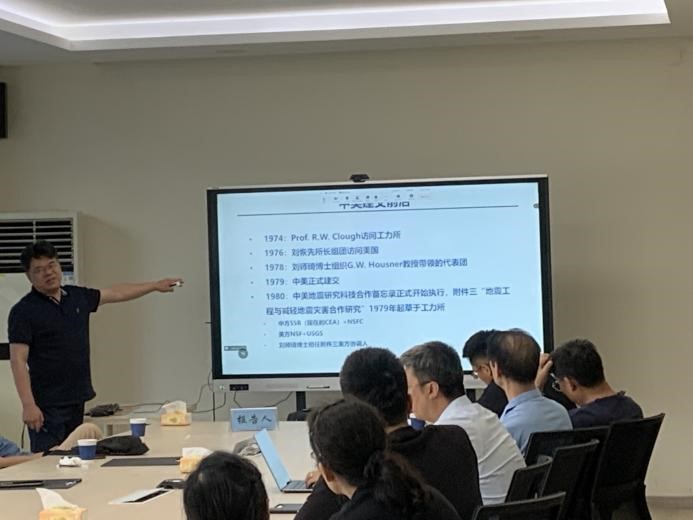 在學術沙龍報告會上,防災科技學院薄景山研究員回答了土木工程領域中場地韌性的問題;王自法研究員講述了劉師琦博士對促進我所中美地震工程科技合作做出的突出貢獻;景立平研究員為研究生講解了水平場地土層振動周期計算方法;專家們對我所重新開啟《波動理論》研究生課程提出了建議。
