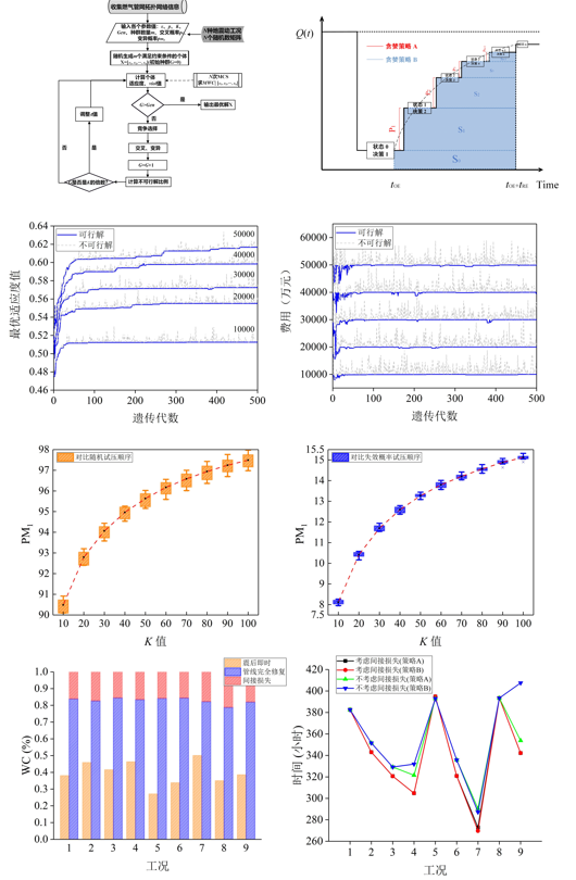 (3)將城市燃氣管網的抗震、救災過程分為三個階段,基于不同的計算機優化方法對各階段的抗震韌性進行提高。第一階段在有限的政府資金預算下,利用自適應比例與直接比較-遺傳算法(FPDC-GA)得到震前最優加固或更換管道的方案,以最大化燃氣管網的抗震魯棒性。第二階段根據震后中斷供氣的用戶端節點分布情況,采用多標簽K近鄰算法(ML-KNN)預測震后泄漏管道,計算震后優化的管道試壓順序,以達到高效率排查失效管道從而快速進入修復階段的目的。第三階段基于貪心策略提出一種震后管道修復順序優化方法,以提升燃氣管網功能恢復的效率。將這三階段提升方法應用于中國華北某城市燃氣管網抗震韌性提升工作中,驗證了所提方法的可行性。相關技術細節可查閱發表在《Soil Dynamic and Earthquake Engineering》上的論文。