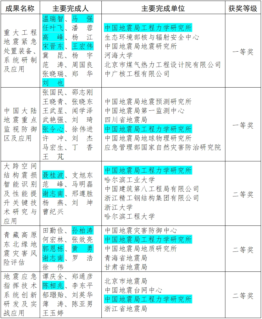 發布時間: 2025-07-17 點擊數量:4739近日,中國地震局公布了2025年度防震減災科研成果獎評選結果,我所作為牽頭單位完成的成果獲一等獎1項、二等獎1項,作為參與單位獲一等獎1項、二等獎2項。